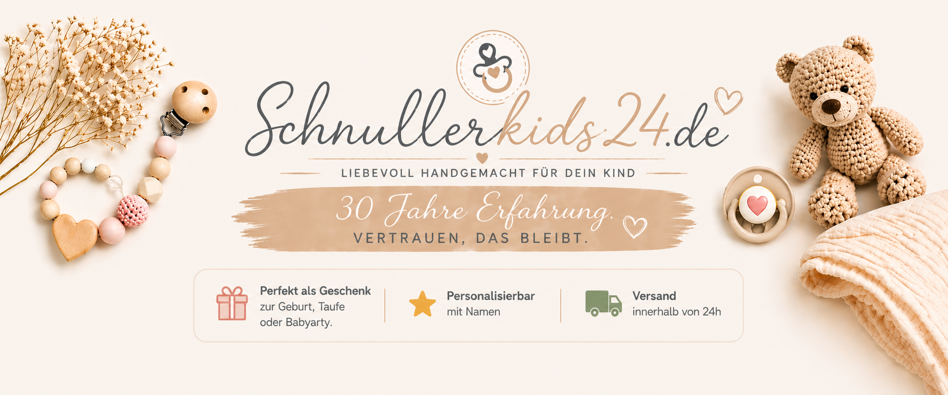 Jede Schnullerkette, jeder Greifling und jede Kinderwagenkette wird sorgfältig kontrolliert, bevor sie sich auf den Weg zu dir macht. So kannst du sicher sein: „Made in Germany“ steht bei uns nicht nur auf dem Papier, sondern für echtes Handwerk, dem du vertrauen kannst.